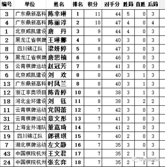 女子组,广东“二陈”陈幸琳、陈丽淳依然领先,唐丹、王琳娜随后。