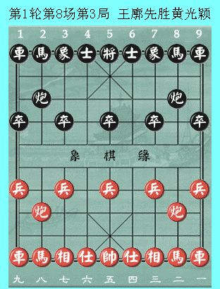 另一场焦点战是王廓对黄光颖。王廓是新科全国冠军,以业余棋手的身份加冕棋王,制造了一个天大的奇迹。黄光颖是广东象棋队的年轻大师,现等级分排名第63位。王廓擅长快棋,有赵金成的棋风;黄光颖则擅长慢棋,不过年轻,手速还是快的。