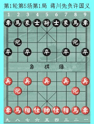第一局,王天一执红先行,飞相开局,郑惟桐应以顺手象。这样的布局二人下了好多盘,双方各有心得。是局,郑惟桐研究有素,布局比较成功,一度取得不错的形势。中局,王天一车四进二点进敌阵,展开攻势。一番交接后,双方都是车马炮三子归边,红方稍好。此时王天一时间上多了一分钟,王天一喝了一口水,很悠闲。双方又试探性地进行了一些攻击,不过各自后方都有危险,不敢过于弄险,最终和棋。
